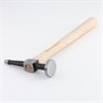 Medium-weight flat face finishing hammer with rounded pick head for raising low spots during panel correction without disturbing surrounding metal.